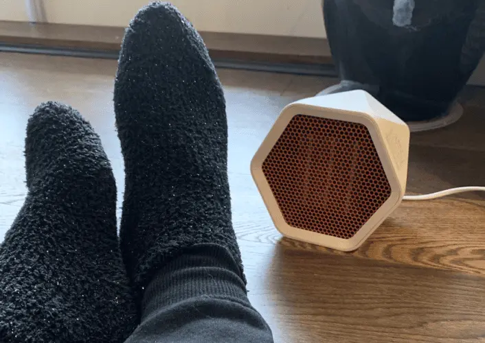 I’ve been using the Hexa Heat on my nightstand for the past week, and I’m genuinely impressed at how quickly it turns a freezing bedroom into something that actually feels welcoming. I plug it in about ten minutes before I crawl into bed, angle it toward the foot of the mattress, and by the time my head hits the pillow the chill is gone! No more curling into a tight ball just to stay warm. It’s almost completely silent, too. The only sound is a faint, soothing hum that disappears under the covers. For the first time all winter I’m falling asleep fast instead of lying there dreading the cold sheets.